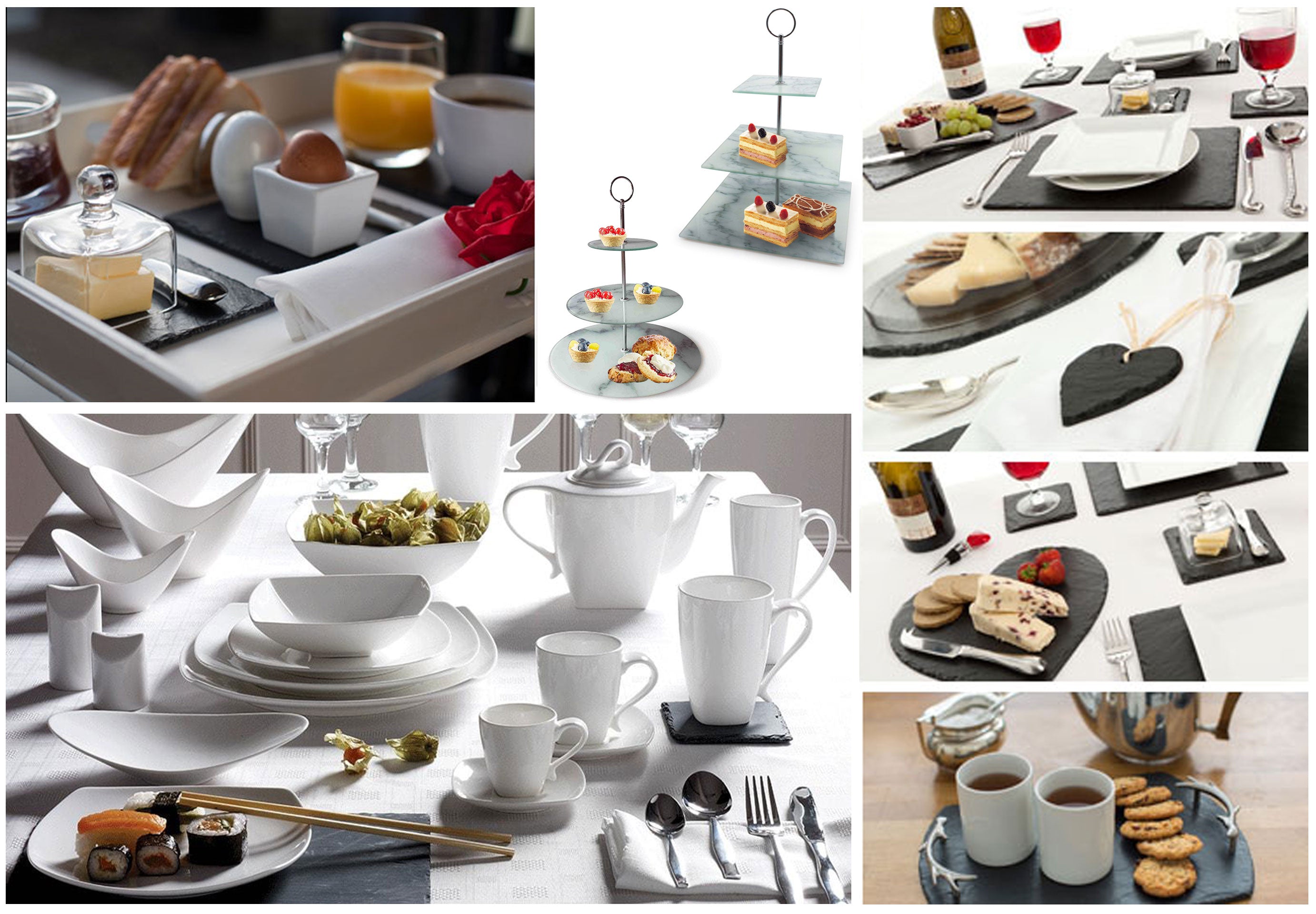 Appetizers Tapas Serving Dishes Set Platter Snack Bowls Nibbles Dips Tray Rustic Slate White Ceramic Van Gogh